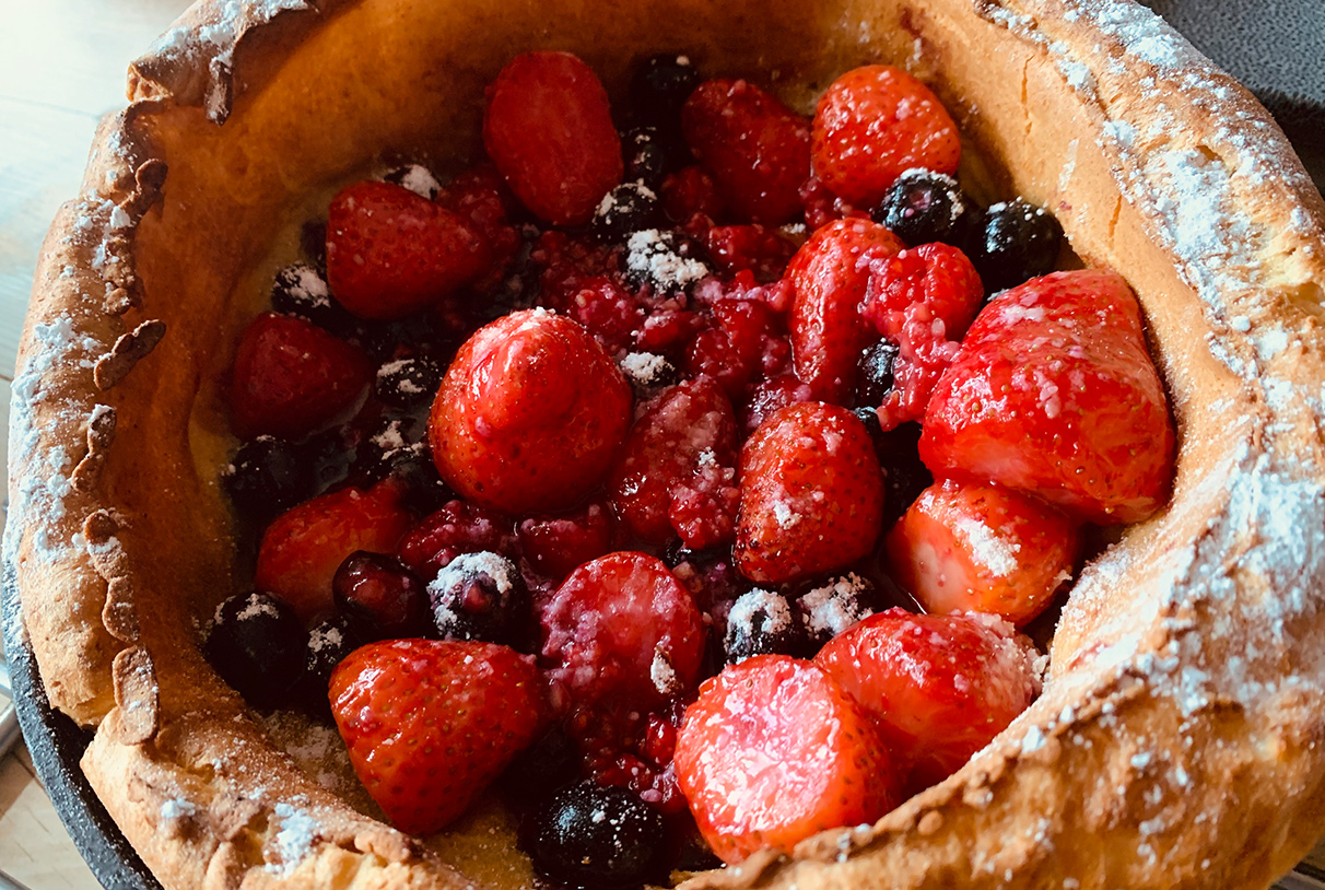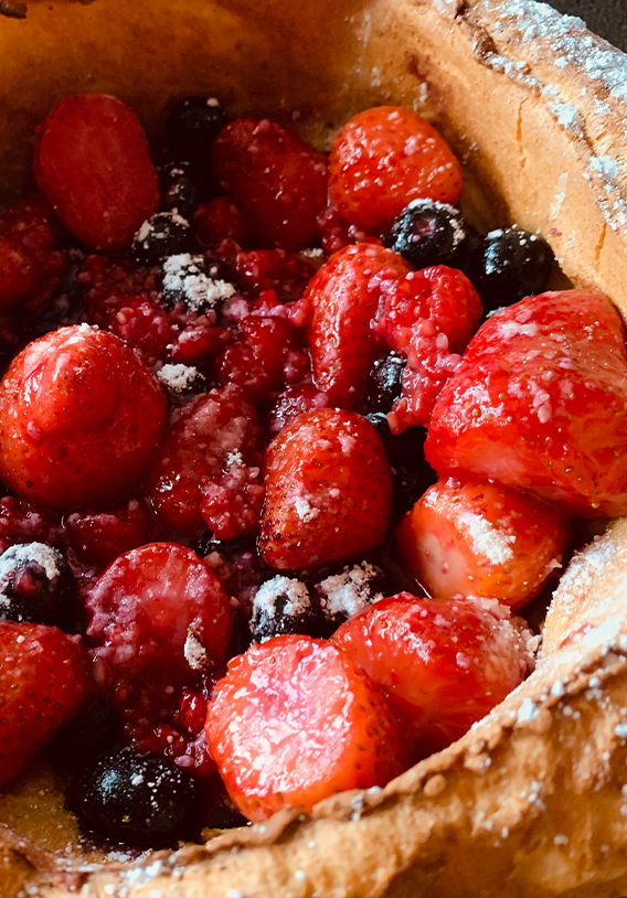 Now that the weather is warmer, I start the morning with a protein smoothie for me and Lyon.It’s the weekend, so I always make a point to do something fun and out of the usual routine - like blueberry pancakes with edible forget me not flowers.